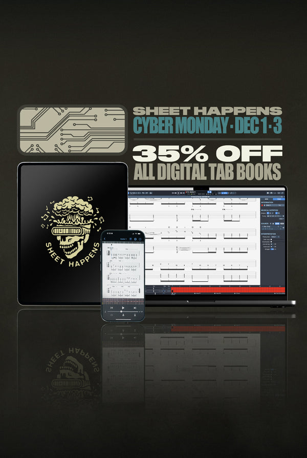All Sheet Happens books come with Guitar Pro files, so you can isolate individual tracks and slow them down to learn at your own speed.